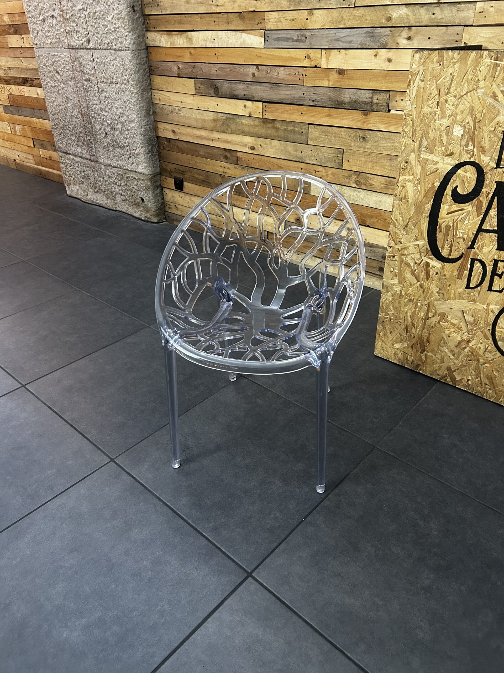 Son design avant-gardiste représente des branches entrelacées asymétriquement, générant un grand intérêt visuel. Ce siège en composite plastique polycarbonate est stable, confortable et résistant.